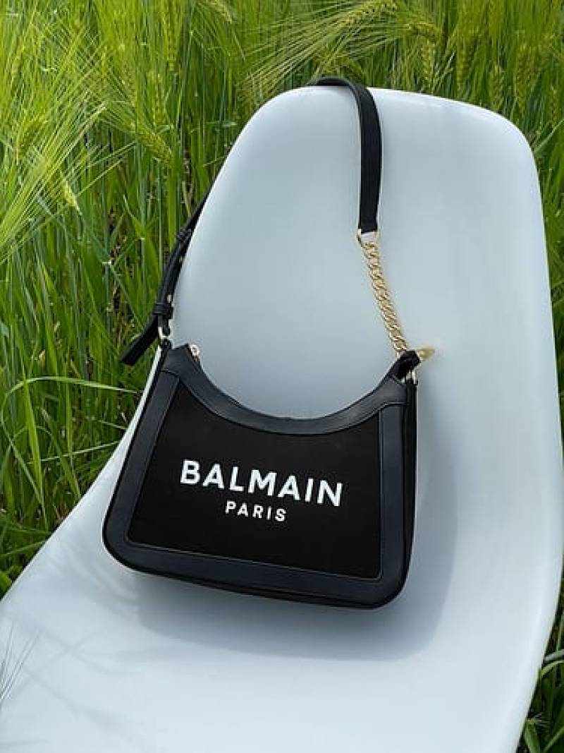Balmai_n B-Army Paris Canvas Shoulder Bag With Box And Dust Bag (Black)