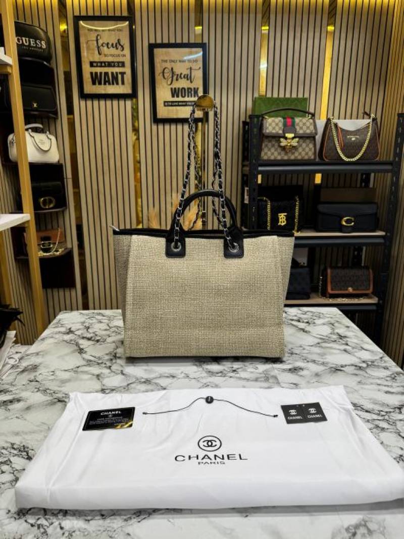 Chane_l Paris-Rue Cambon Timeless Tote Bag (Khaki Black) (V-979)
