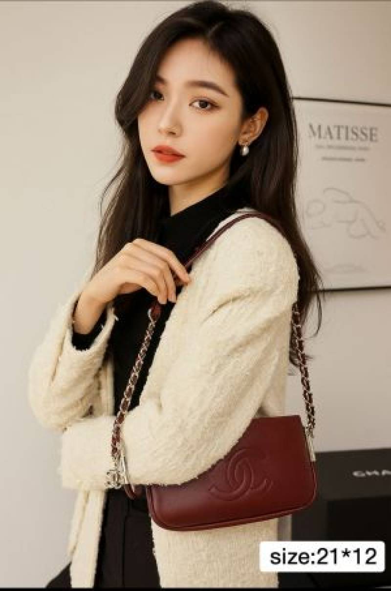 • Chane_l handbag Grained calfskin & gold-tone metal maroon (V-3707)