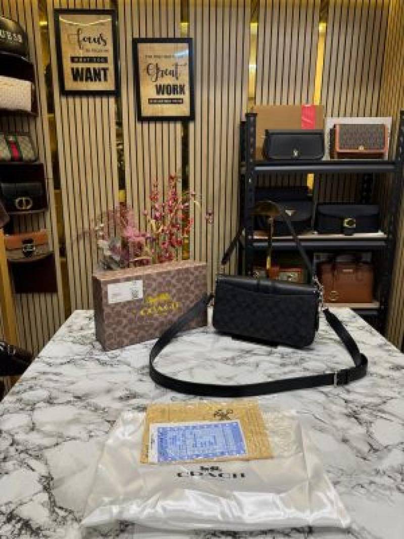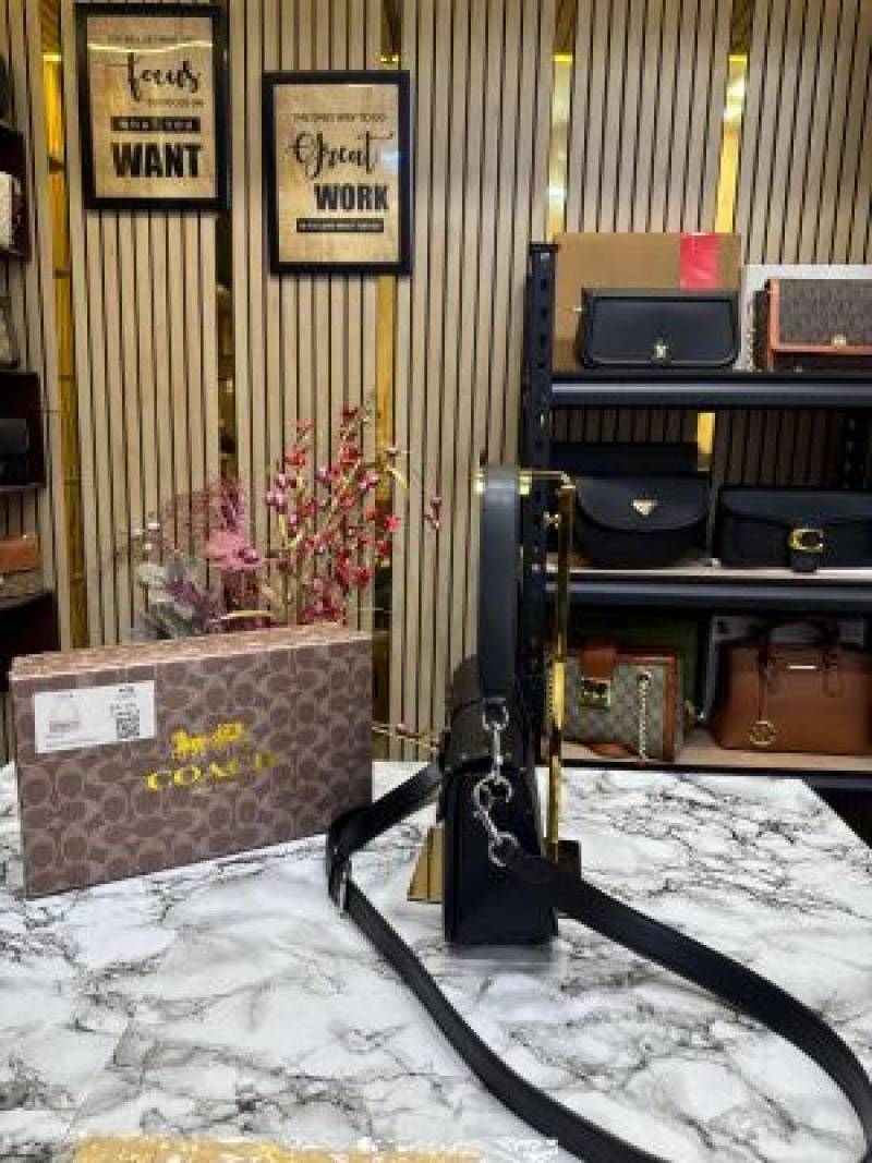 COAC_H GEORGIE SHOULDER BAG IN COLORBLOCK SIGNATURE CANVAS WITH RIVETS & OG BOX AND DUST BAG (BLACK)