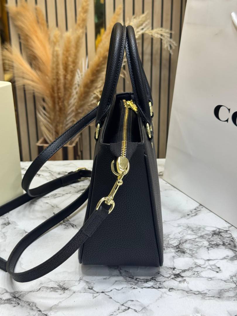 Coac_h Signature Leather Satchel Top Handle Bag With Box And Dust Bag Including Carry Bag (Coffee)
