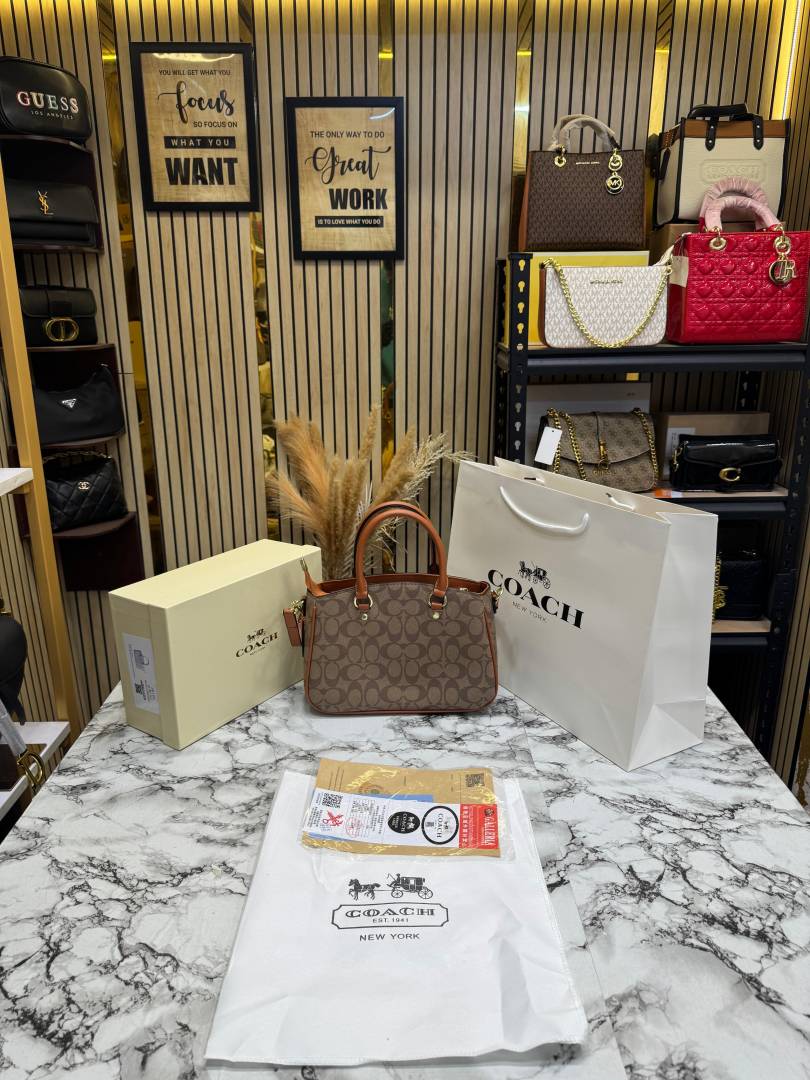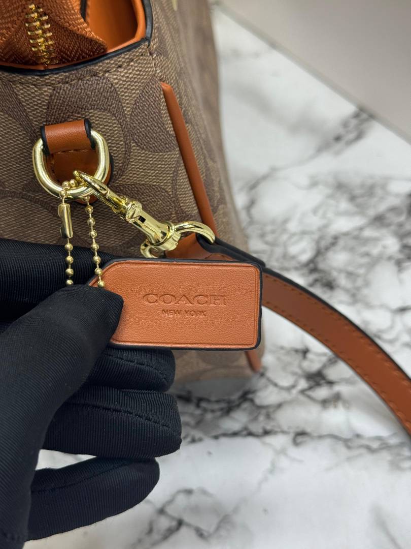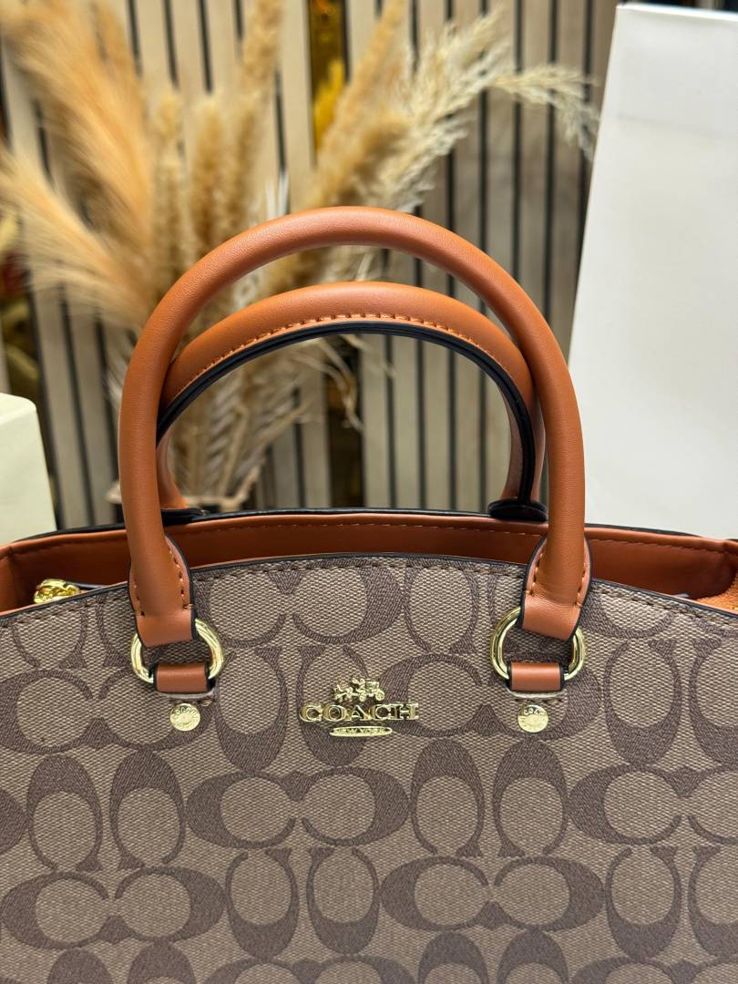 Coac_h Signature Monogram Leather Satchel Top Handle Bag With Box And Dust Bag Including Carry Bag (Apricot-3616)