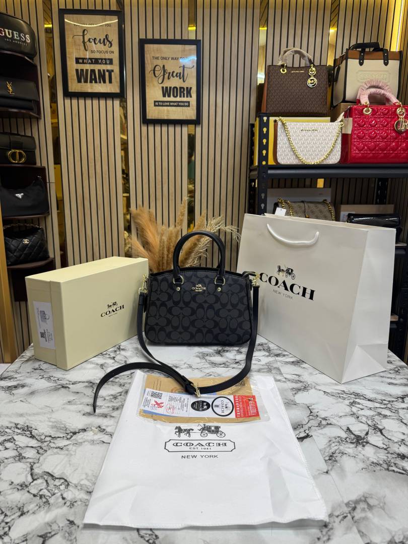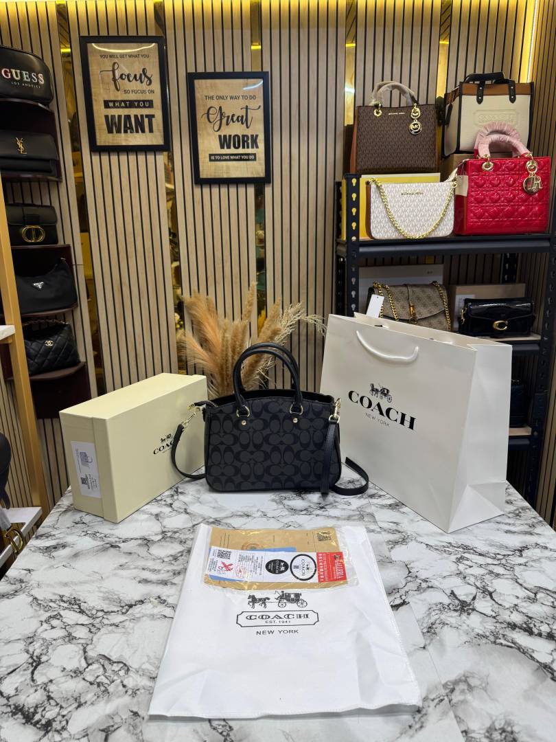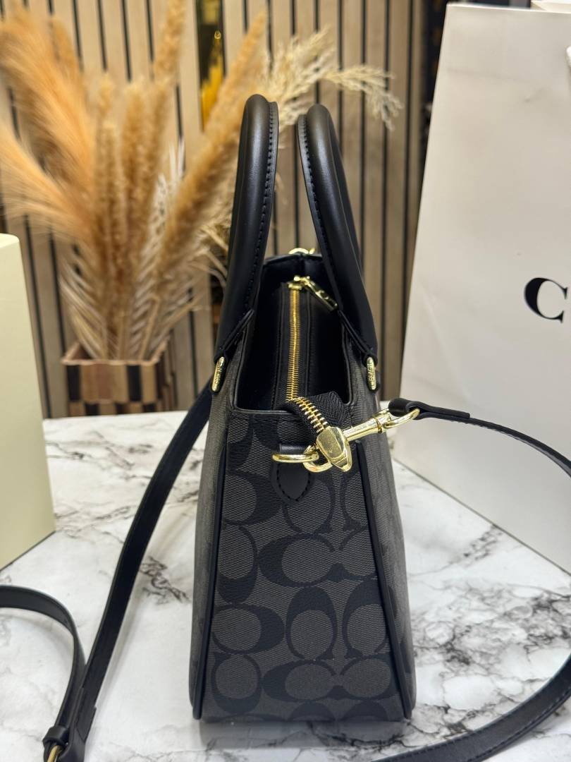 Coac_h Signature Monogram Leather Satchel Top Handle Bag With Box And Dust Bag Including Carry Bag (Black-3616)