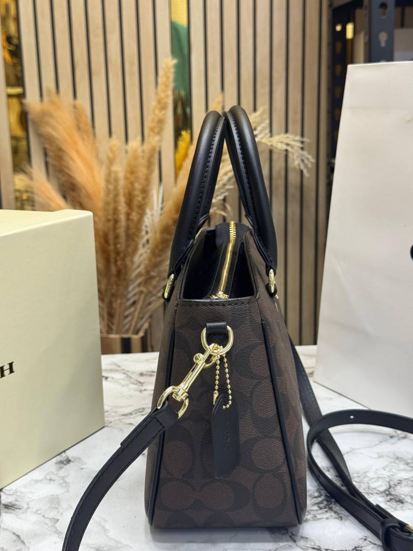 Coac_h Signature Monogram Leather Satchel Top Handle Bag With Box And Dust Bag Including Carry Bag (Coffee-3616)
