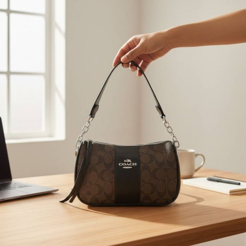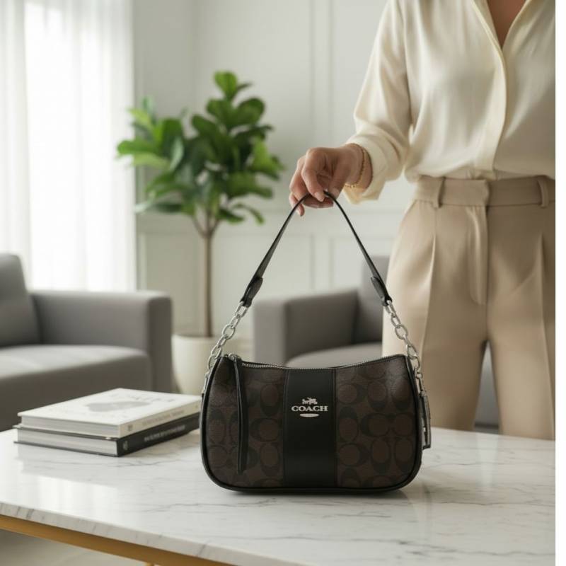 • Coach_Teri_Singature_Canvas_Shoulder_Bag_With_Box_Dustbag_SlingBelt_6071