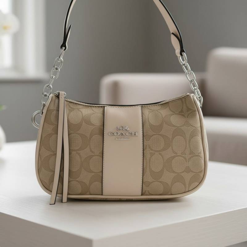 • Coach_Teri_Singature_Canvas_Shoulder_Bag_With_Box_Dustbag_SlingBelt_6071