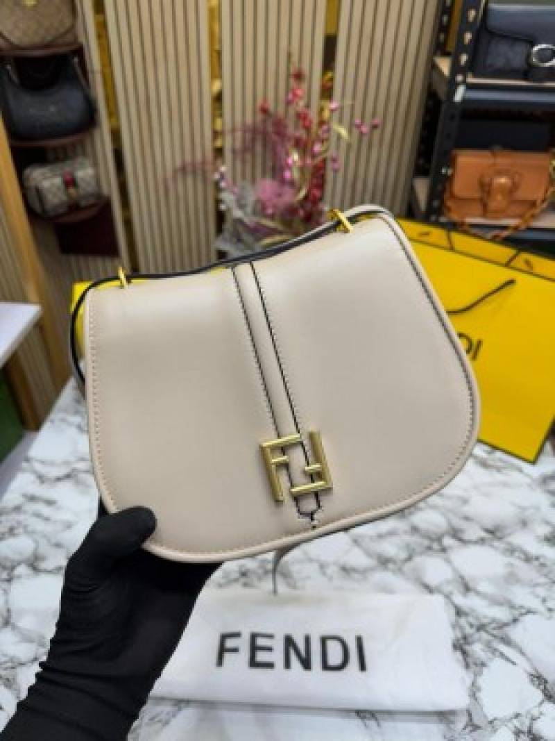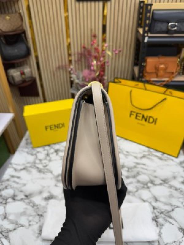 FEND_I COMON FF LOGO PLAQUE HANDBAG WITH OG BOX AND DUST BAG INCLUDING CARRY BAG PREMIUM QUALITY (WHITE)