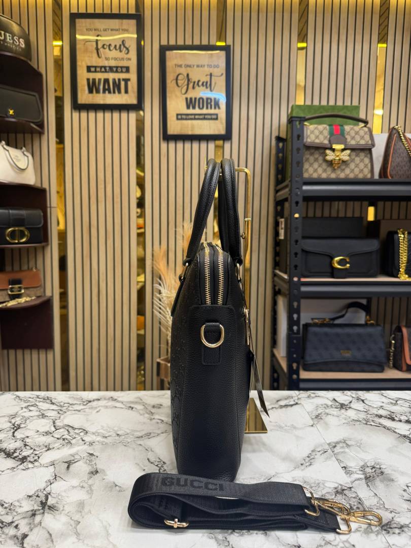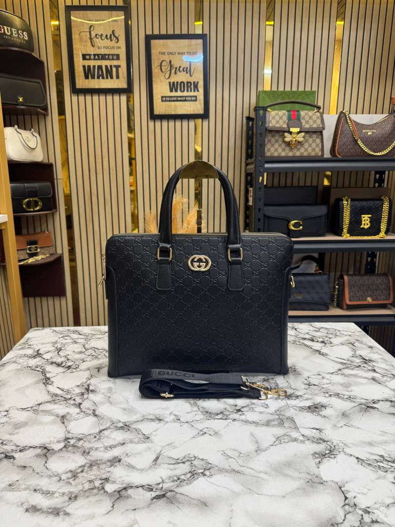 Gucc_i GG Embossed Monogram Laptop Bag With Strap