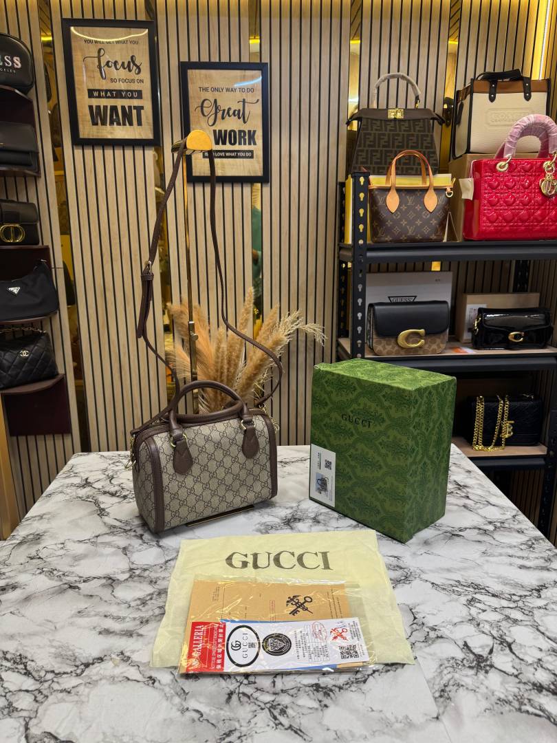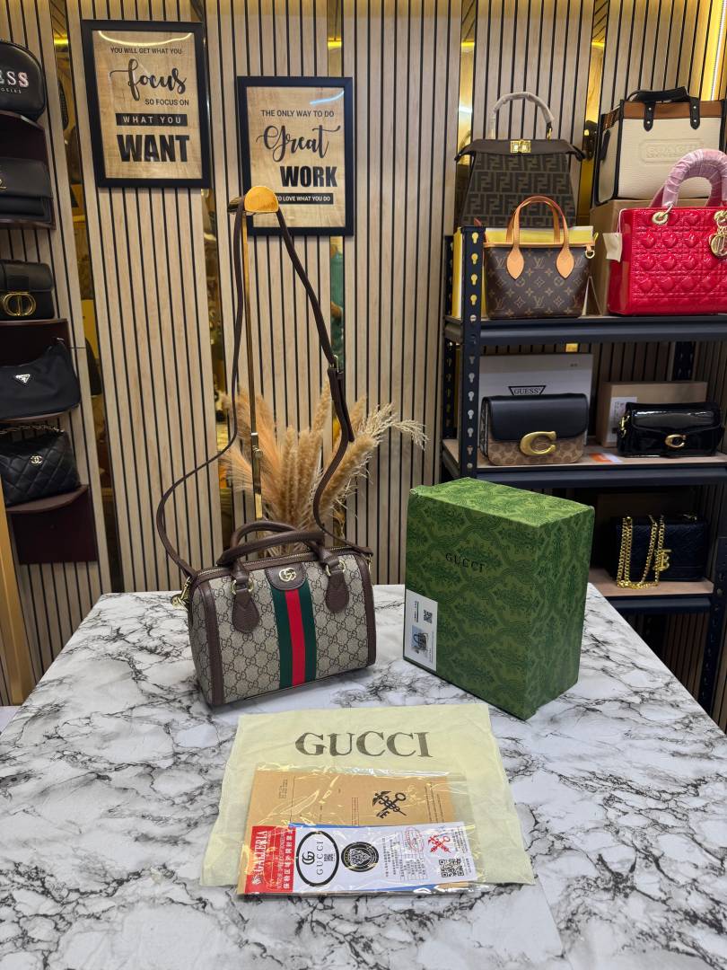 Gucc_i Speedy Supreme Stripe Mini GG Top Handle Bag With Box And Dust Bag