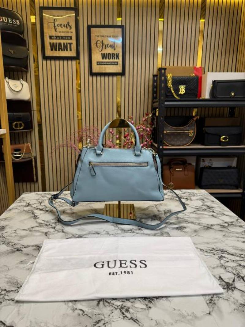 Guess Faux Leather Handbag With Box And Dust Bag Including Carry Bag (Brown)