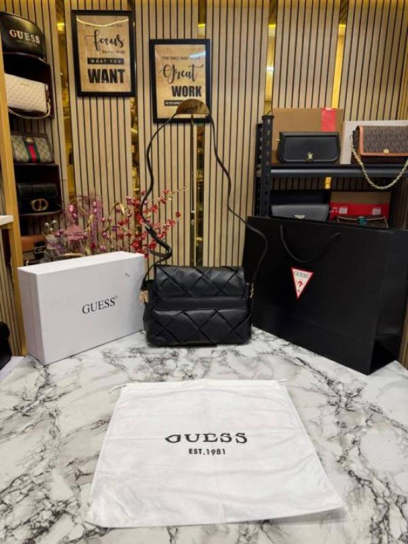 Guess Quilted Crossbody Bag With Box And Dust Bag Including (Black)