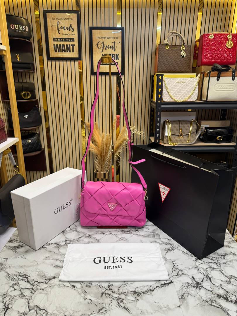 Guess Quilted Crossbody Bag With Box And Dust Bag Including (Pink)