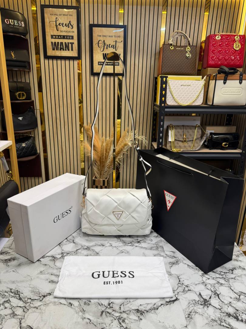 Guess Quilted Crossbody Bag With Box And Dust Bag Including (Brown)