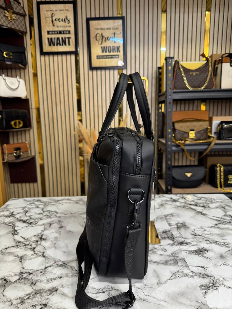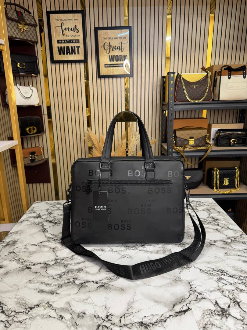 Hugo_Boss Premium Classic Printed Laptop Bag With Strap (Black-7804)