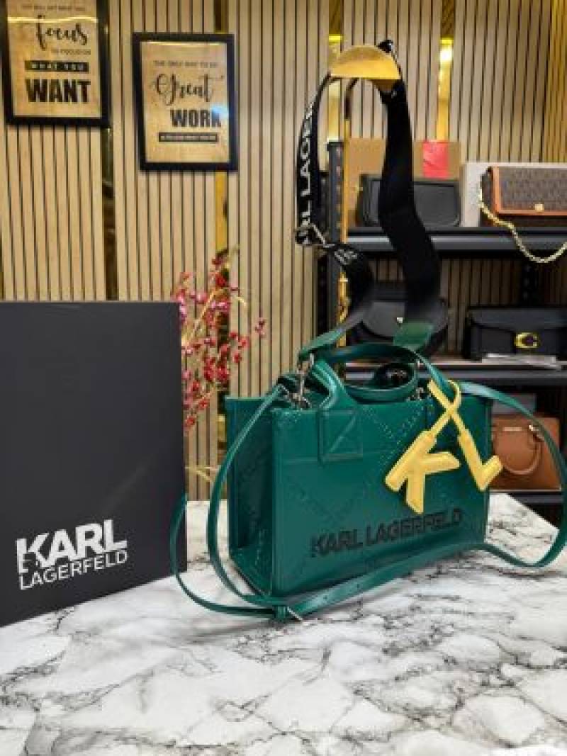 • Karl Lagerfeld KSKUARE Embossed Small Tote Bag GREEN