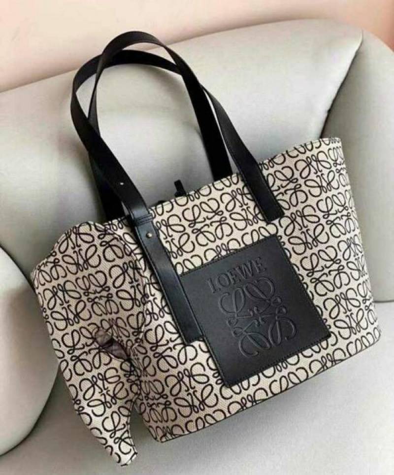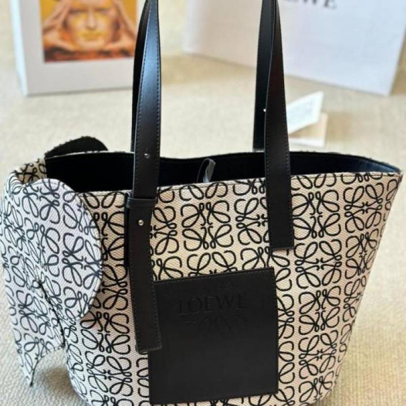 Loewe Elephant Anagram Premium Edition Basket Tote Bag With Dust Bag (Black - 700)