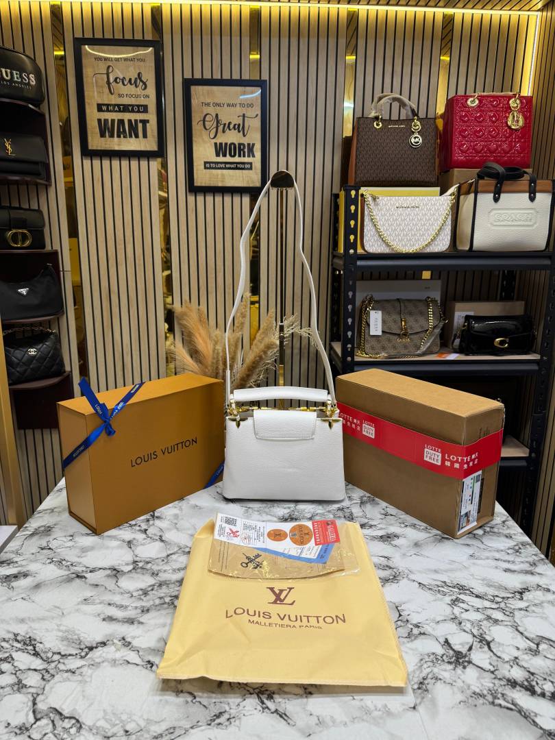 • Louis_Vuitton Capucines Taurillon Handbag With Double Og Box And Dust Bag (White)