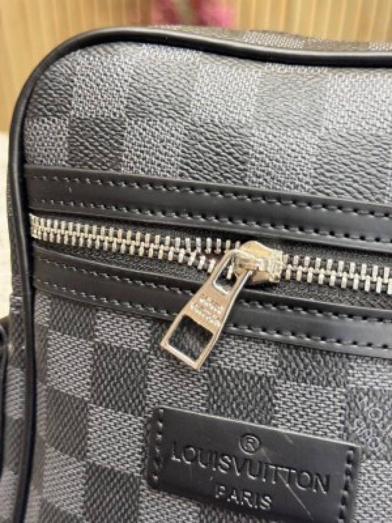 LOUIS_VUITTON LV LOGO SIDE BAG BLACK CHECKS WITH DUST BAG