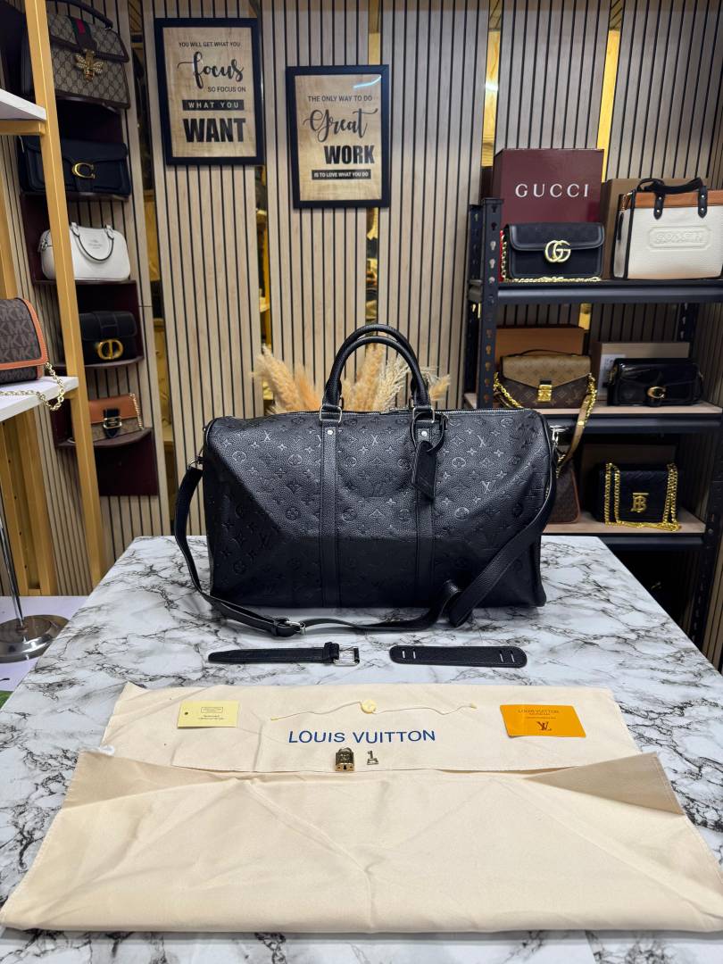 • Louis_Vuitton Keep All Bandouliere Embossed Duffle Bag With Dust Bag (Black)