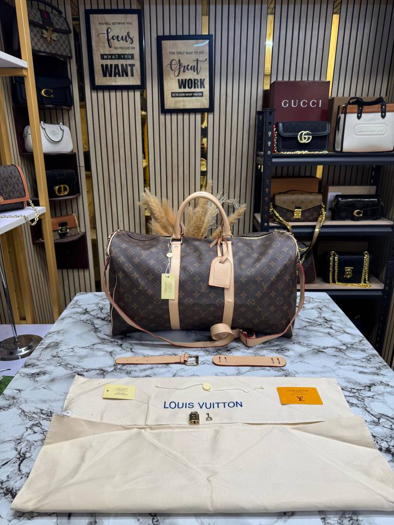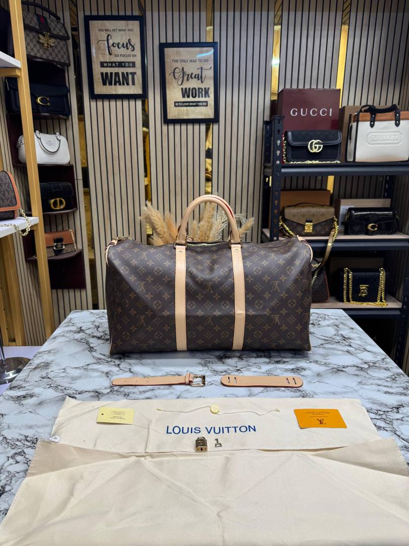 • Louis_Vuitton Keep All Bandouliere Monogram Duffle Bag With Dust Bag (Brown)