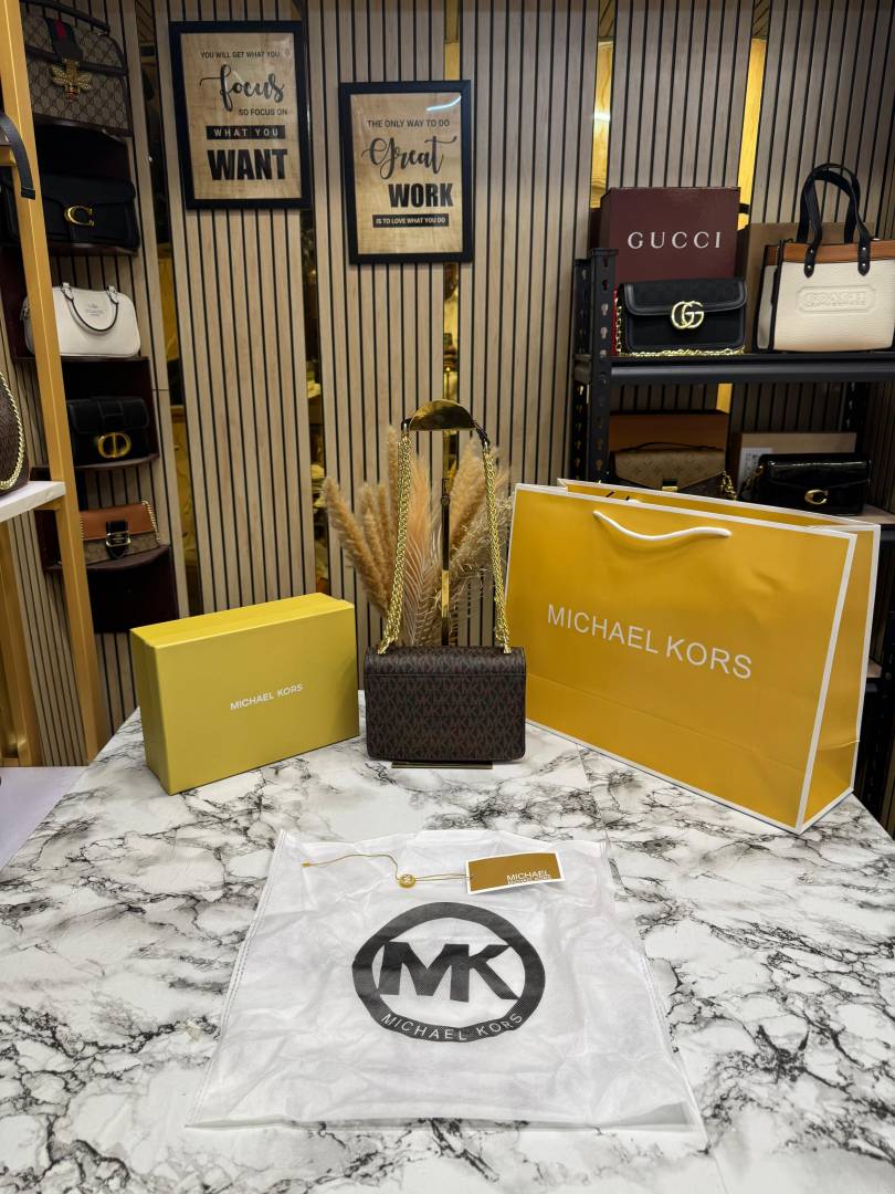 MICHAEL KOR_S HEATHER MK LOGO WITH OG BOX AND DUST BAG WITH CARRY BAG PREMIUM QUALITY (BROWN) 60027