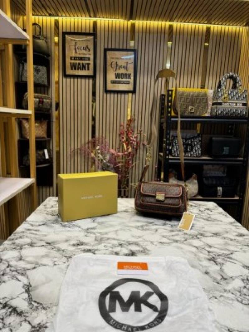 michael_kors bradshaw monogram camera bag with og box and dust bag