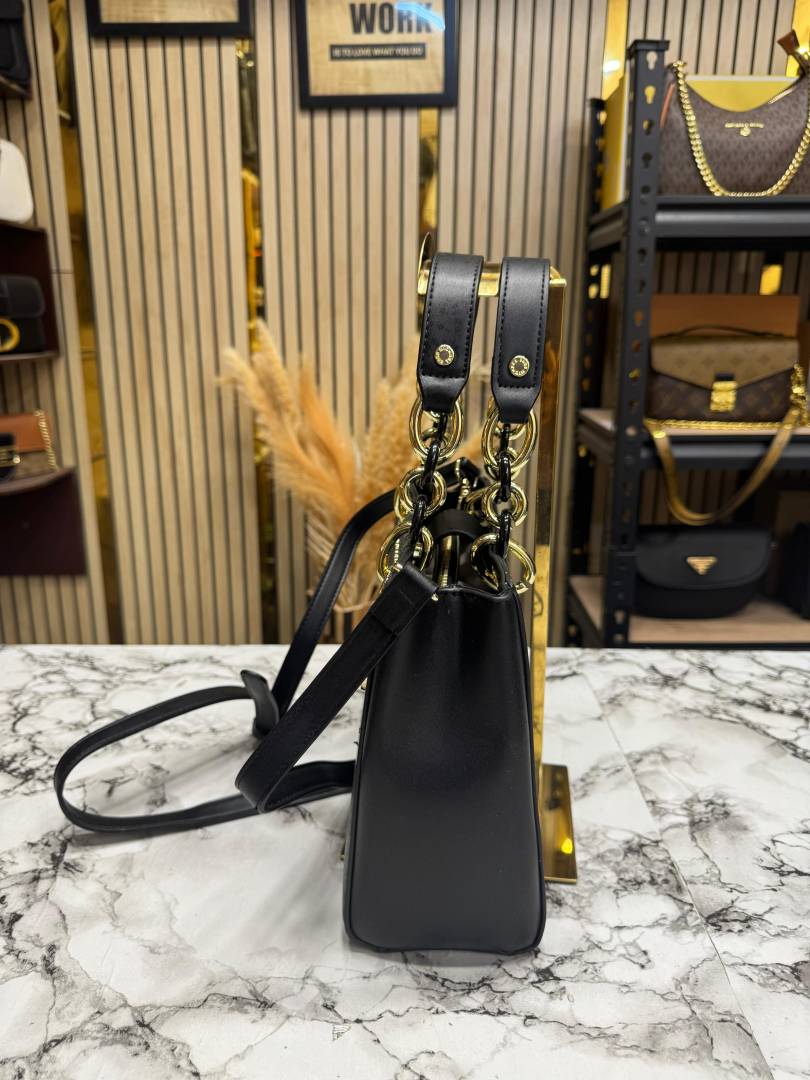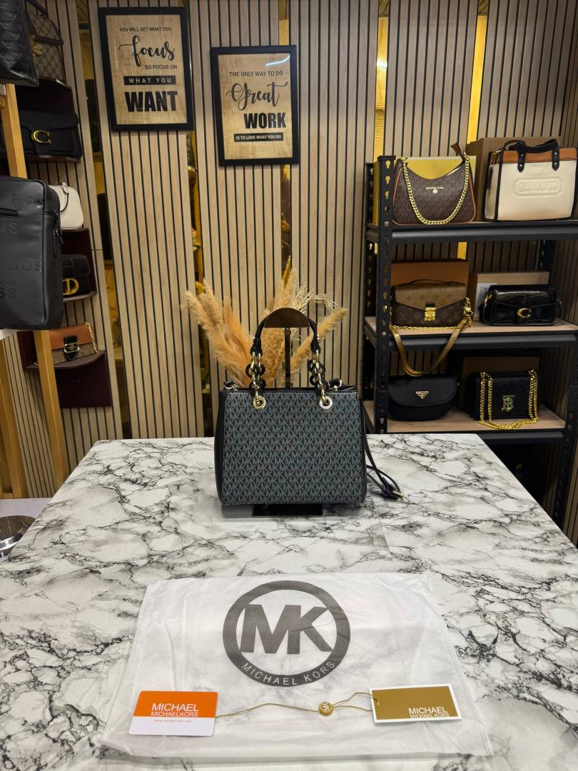 Michael_Kors Cynthia Signature Logo Satchel Bag With Dust Bag (Black)