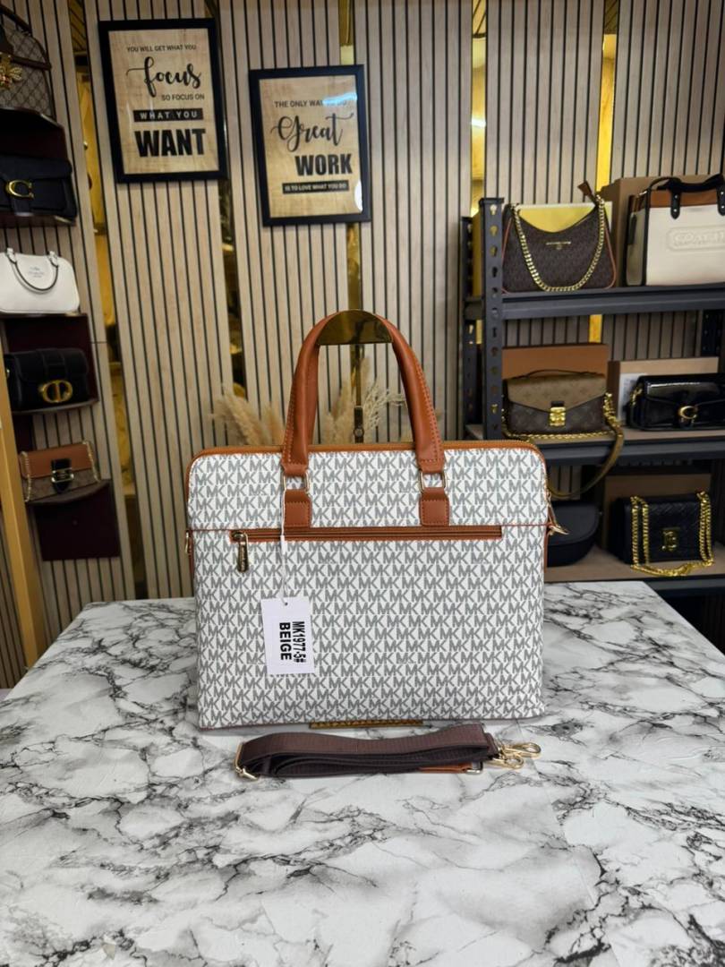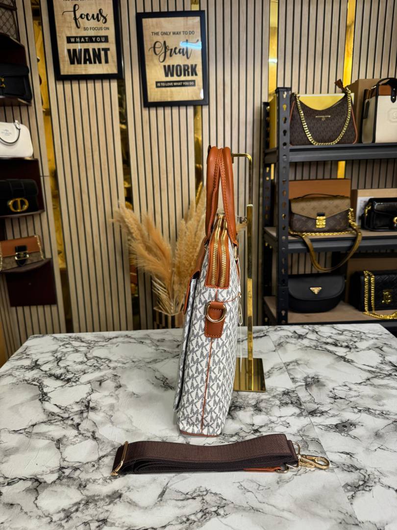 • Michael_Kors Flap Mk Print Laptop Bag Premium Quality With Strap (Beige 1977-5)