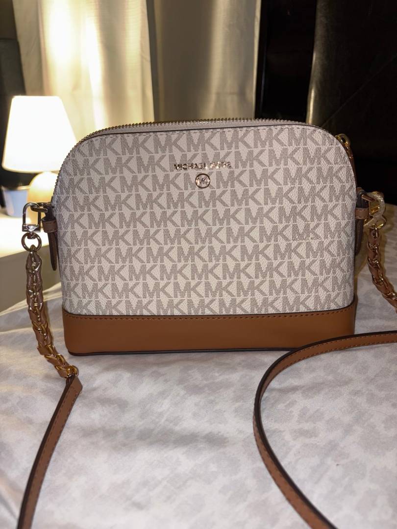 • Michael_Kors Jet Set Charm Logo Dome Saffiano Leather Crossbody Bag (Beige-24032)