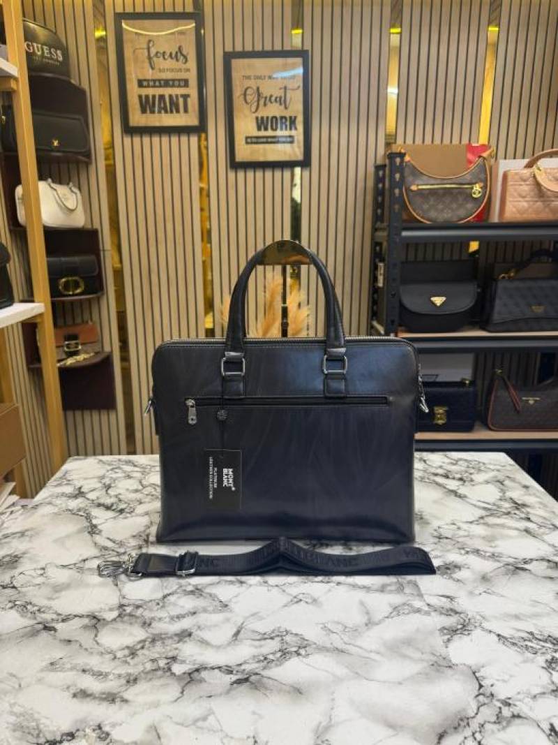 Mont Blanc Polished Premium Quality Laptop Bag With Strap (F1967-Black)