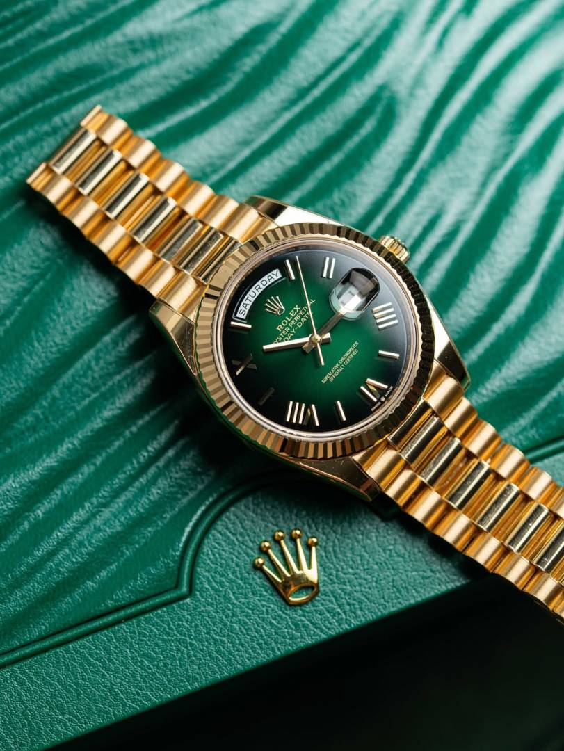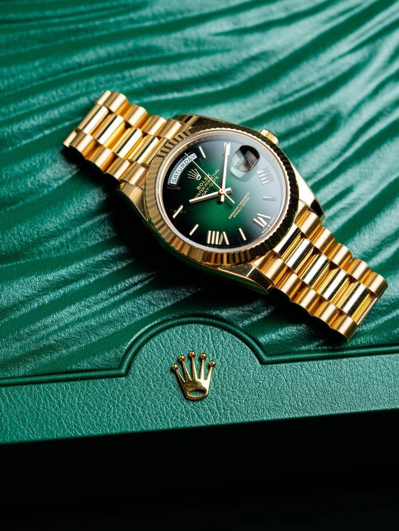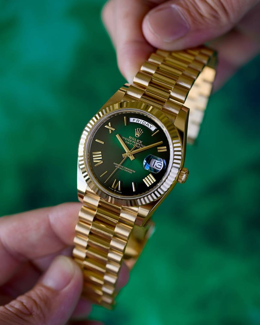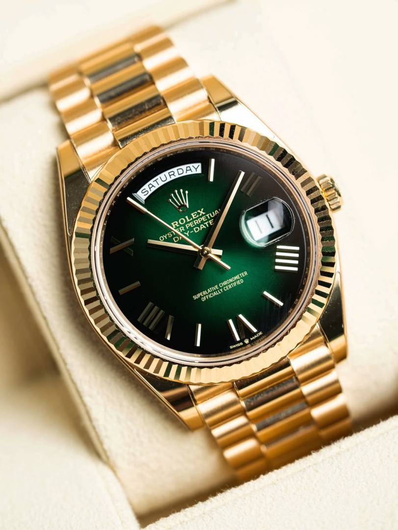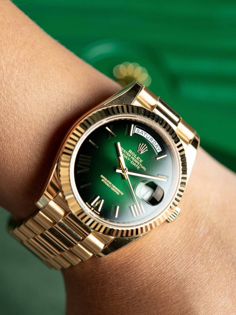 Role_x Oyster perpetual Day Date Automatic Gold-Green
