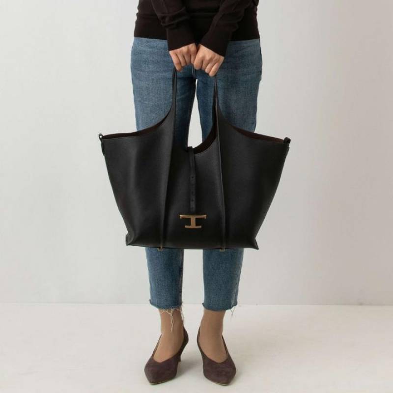 Tods T Timeless Premium Quality Leather Bag With Extra Pouch & OG Magnetic Box With Dust Bag (Black - 444)