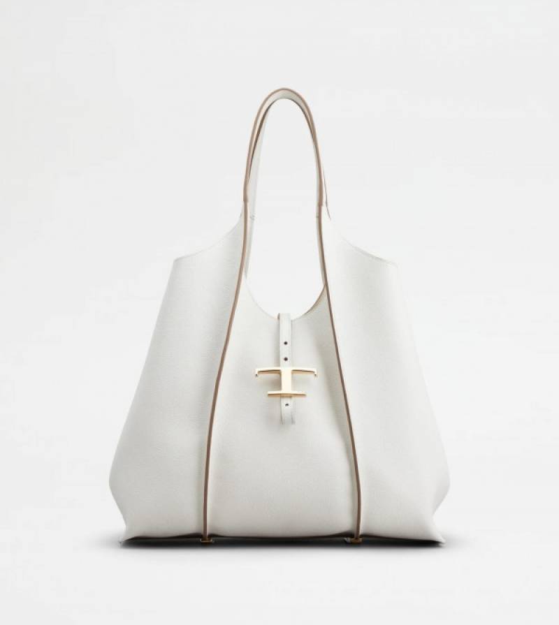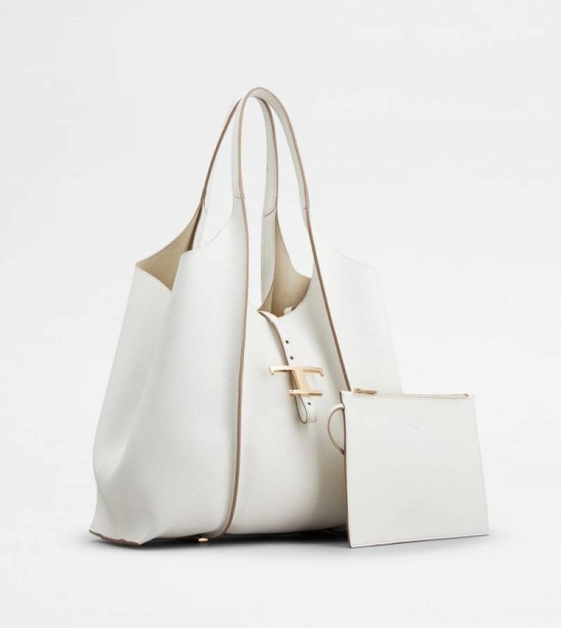 Tods T Timeless Premium Quality Leather Bag With Extra Pouch & OG Magnetic Box With Dust Bag (White - 445)