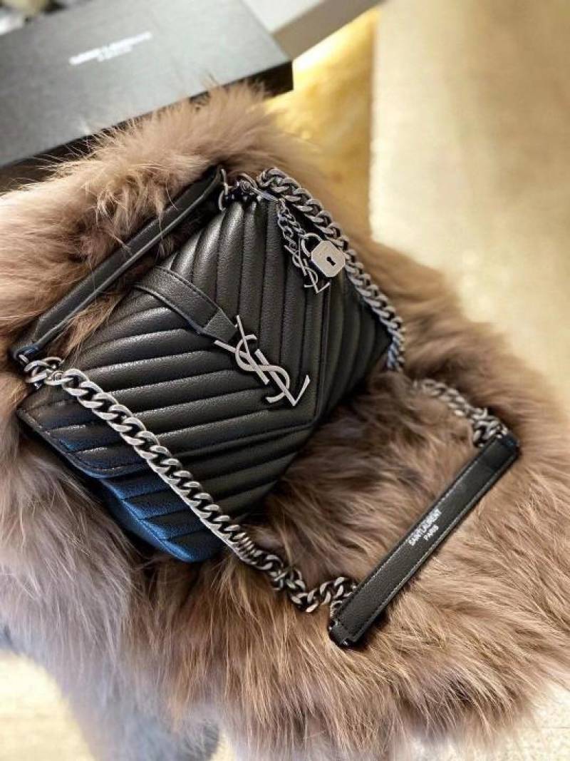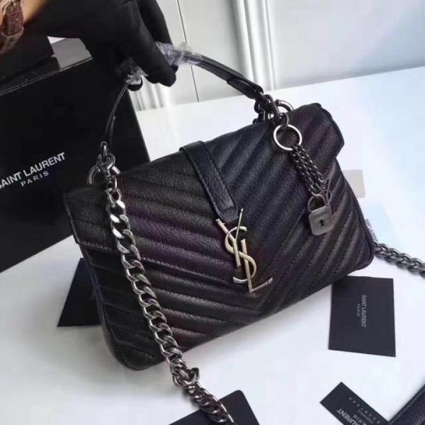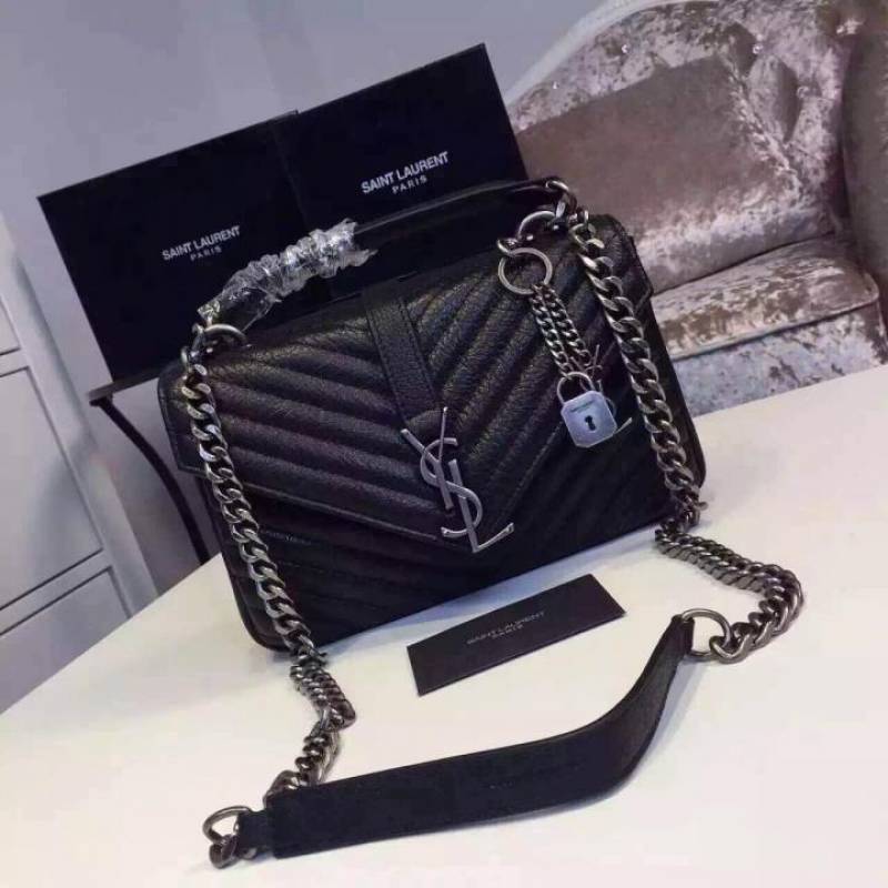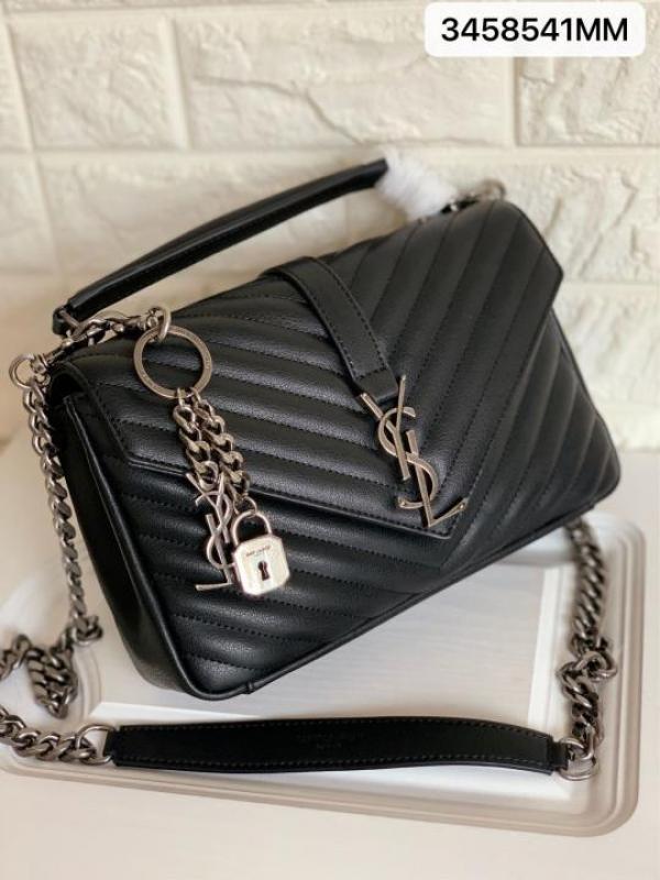 • Ysl Collage Black-Silver Medium Shoulder Bag With Original double Box & Dust Cover