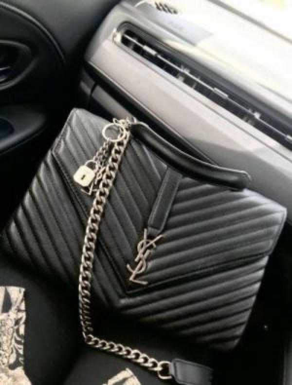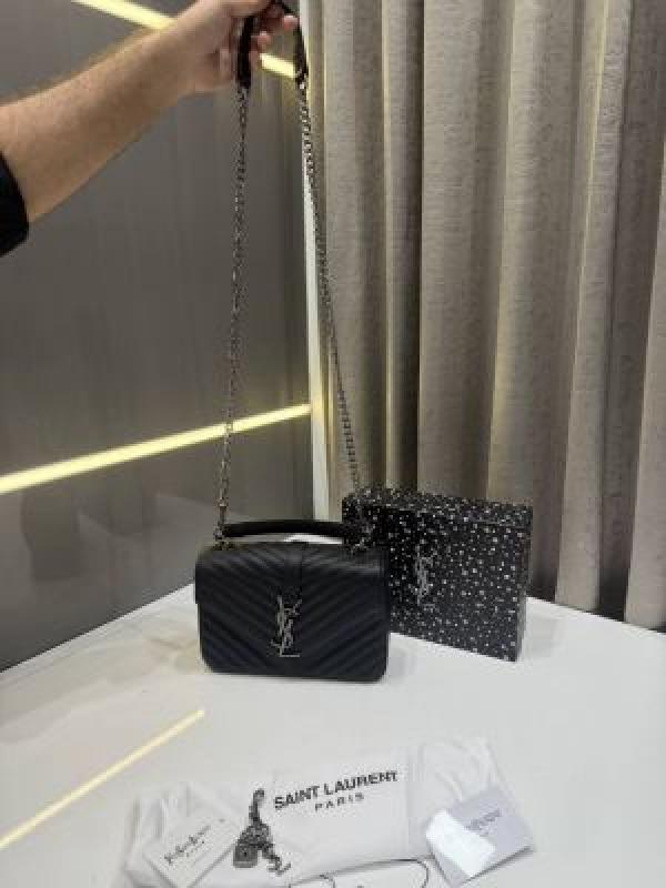 YSL SAINT LAURENT Grain De Poudre Matelasse Chevron Medium Monogram Satchel Black with box 5503