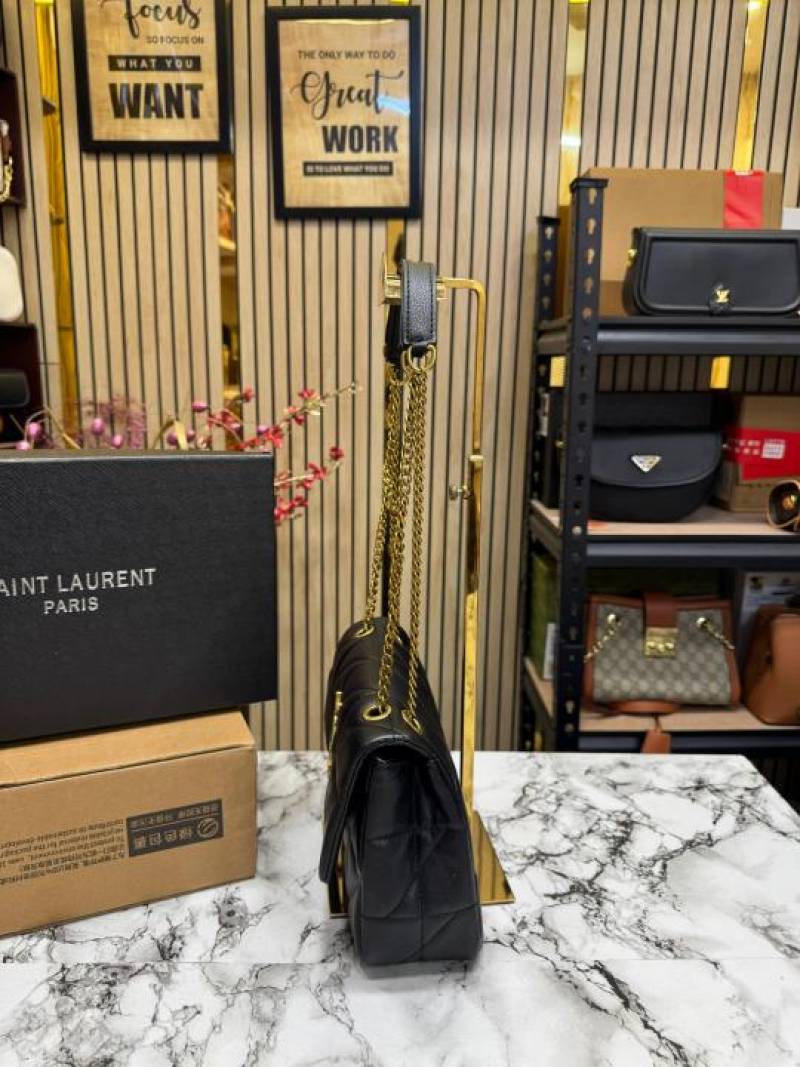 Ysl Saint Laurent Laulau Golden chain Shoulder Bag With Double Og Box And Dust Bag (Black)