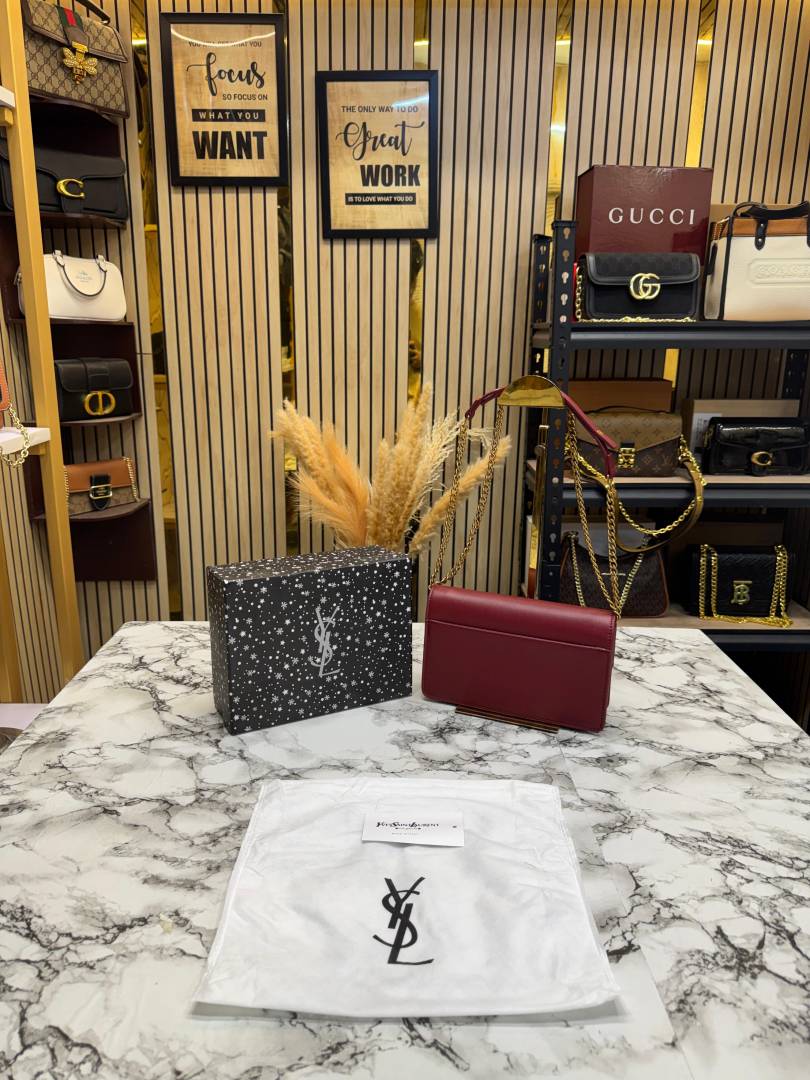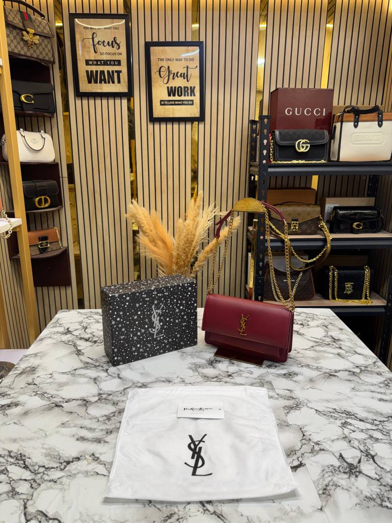 Ysl Yves Saint Laurent Sunset Shoulder Bag With Box And Dust Bag (Red)